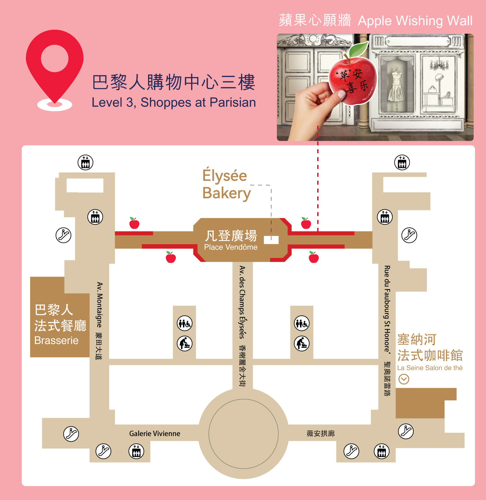 快來巴黎人購物中心3樓的夢幻「蘋果心願牆」 前集合!這裡不僅是絕美的打卡背景,更是乘載滿滿祝福的能量場!